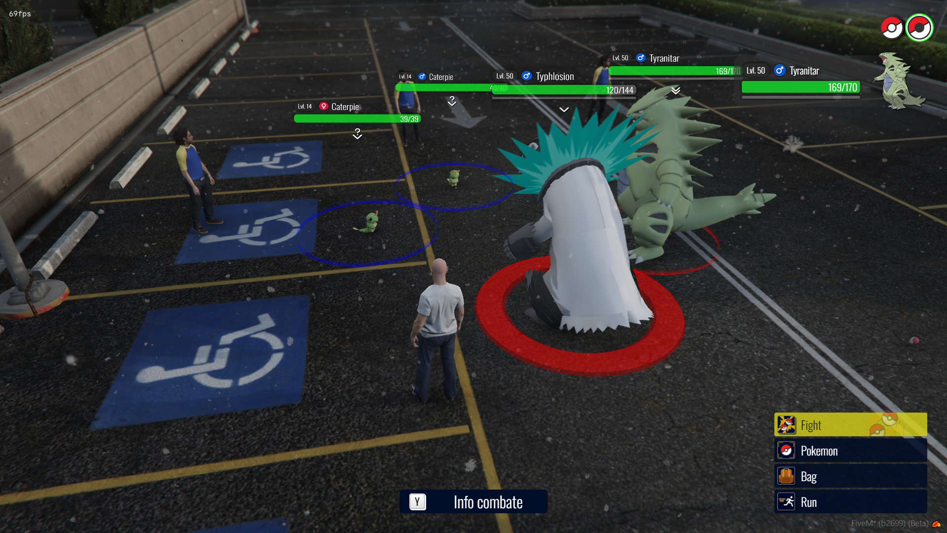 Fivemon includes all the essential mechanics needed for modern Pokémon gameplay, including stats like EVs, IVs, natures, and abilities. Pokémon can evolve, level up, and participate in complex battles, all within a flexible and immersive system. We have pokemon up to the second generation included, but the mod itself supports up to the latest generations.